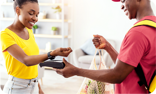 Receba pagamentos e exiba seus produtos, tudo em um só dispositivo portátil e online.